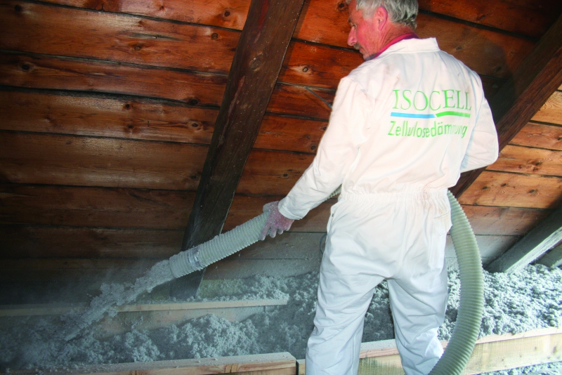 Cellulose insulation ISOCELL is made from recycled newspaper and mixed with mineral salts. It is an ecological product.